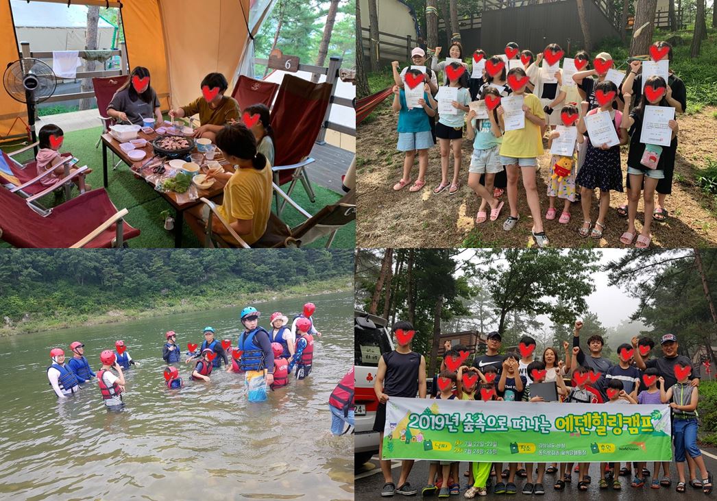 2019여름캠프 에덴원 0 32926 2019.08.07 13:29 2019년 여름캠프를 산청으로 다녀왔습니다. 레프팅 및 생존수영으로 시원한 물놀이 시간을 가졌어요~ 또한 글램핑장에서 즐거운 시간 보내고 돌아왔습니다.
