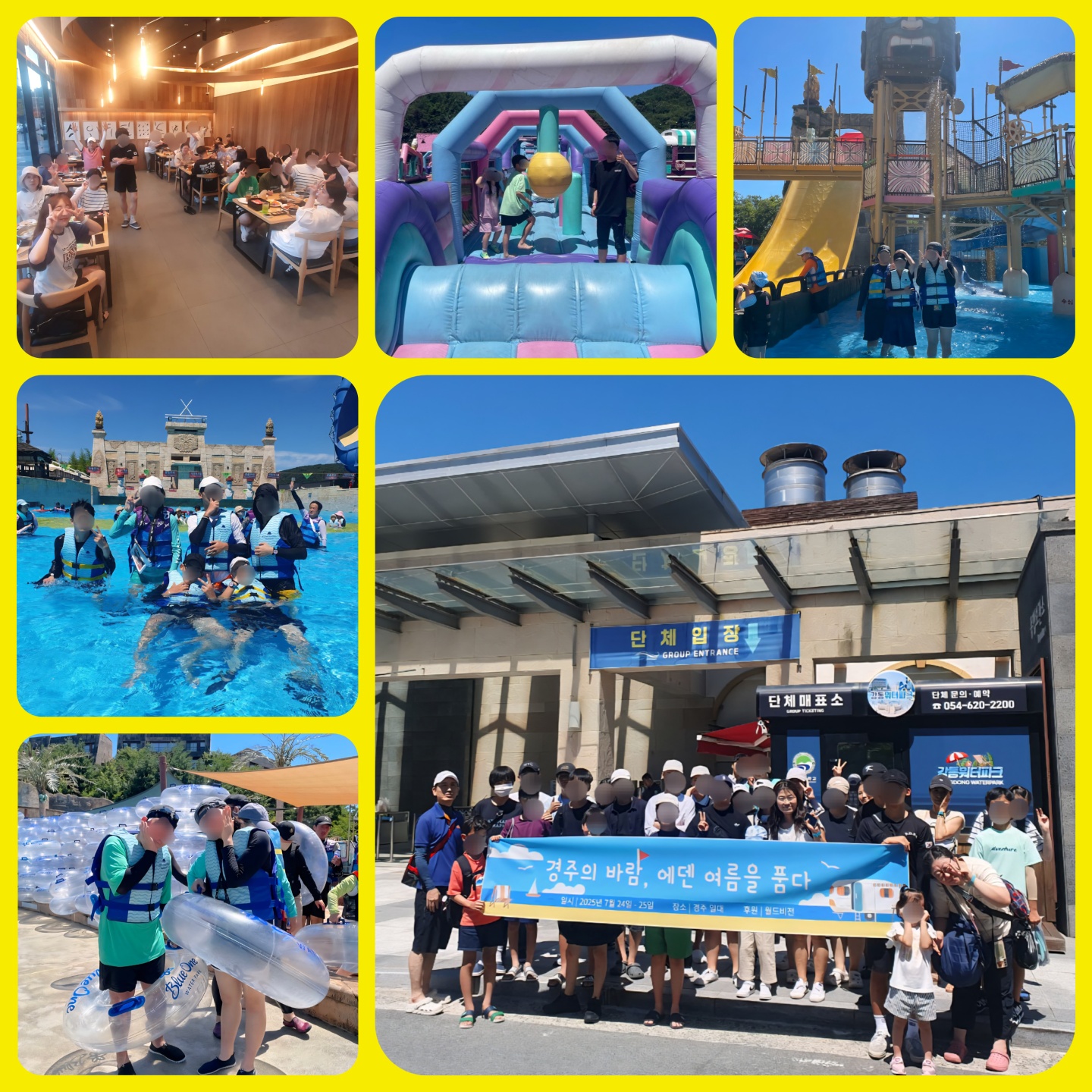 2025년 7월 하계캠프 에덴원 0 265 2025.08.11 15:00 아이들이 1박 2일 일정으로 하계 캠프를 다녀왔습니다.1일차 강동 워터 파크에서 신나는 물놀이와 저녁 식사 후 동궁과 월지 산책 일정을 갖고,2일차 MCY 파크에서 에어 바운스 놀이와 아기자기한 시설에서 셀카 찍기 일정을 보냈습니다. 알찬 하계 캠프 일정덕분에 멋진 시간을 보낸 아이들이 벌써부터 내년 하계 캠프는 어디로 가냐고 묻습니다.^^