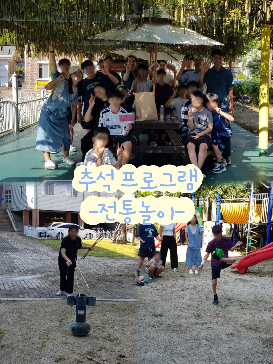 -추석 연휴 프로그램으로 마당에 모여 전통놀이 및 피구 활동을 하였습니다-
