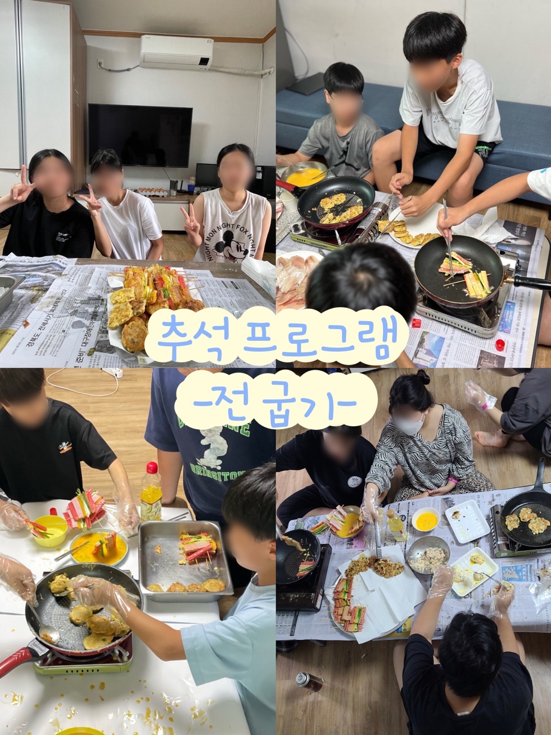-추석 프로그램으로 방별 전 굽기 활동 후 맛있게 점심으로 먹었습니다-