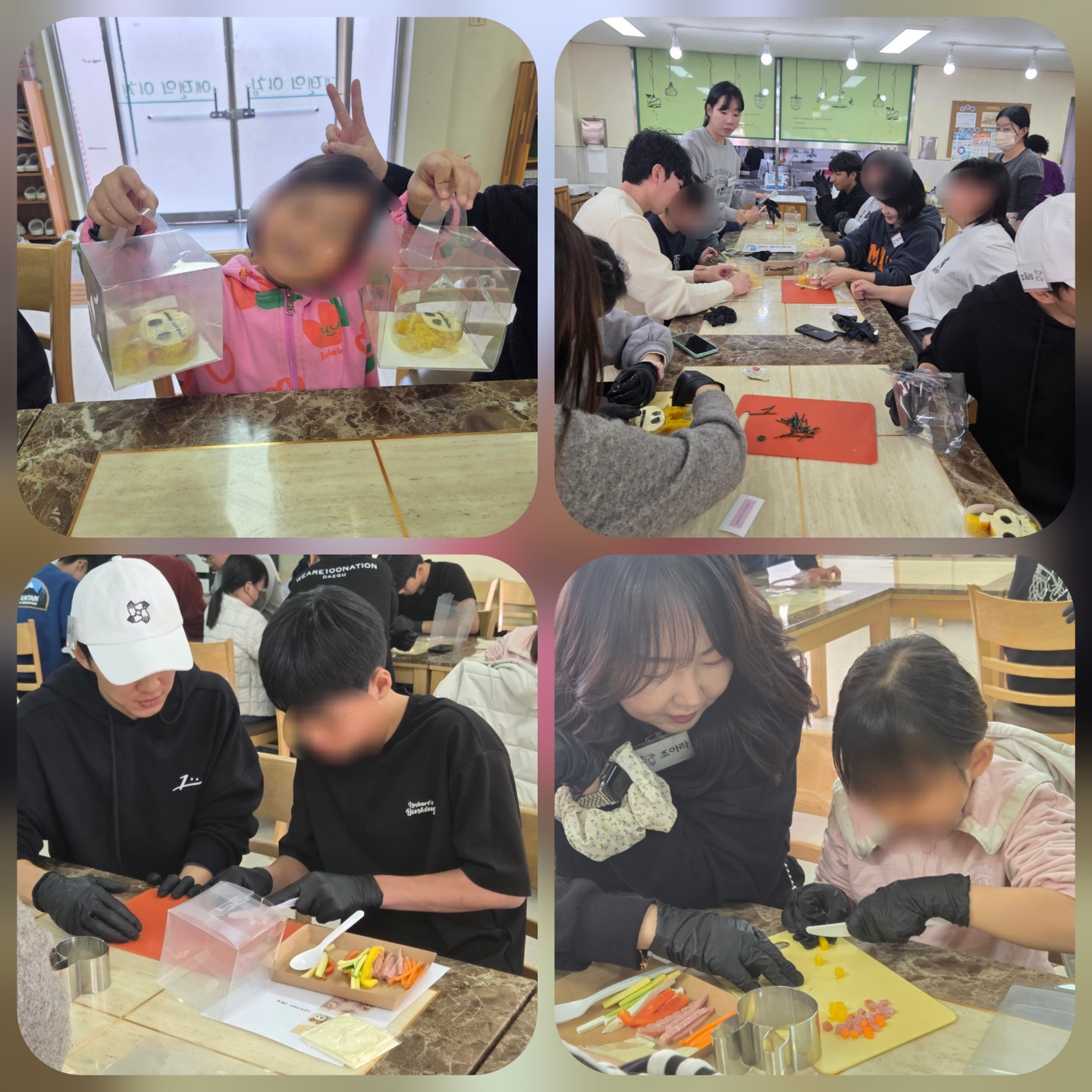 2025년 11월 백의민족 봉사단 우봉재단 0 265 2025.11.30 20:49 백의민족 봉사단과 함께 11월 활동은 '나만의 도시락 만들기'입니다.직접 야채도 썰고, 소세지도 썰어 보고,맛있는 강황밥 사이에 준비한 재료들을 넣고 '라부부' 모양의 맛있는 '나만의 도시락'을 완성 시켰습니다.그리고 맛있게 냠냠하며 행복한 시간을 보냈습니다.~~^^
